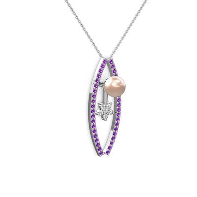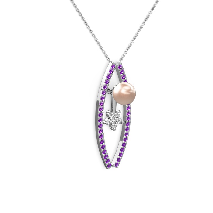 Pembe inci, ametist ve swarovski 925 ayar gümüş kolye (40 cm beyaz altın rolo zincir)