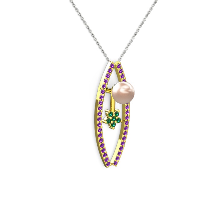 Pembe inci, ametist ve yeşil kuvars 8 ayar altın kolye (40 cm beyaz altın rolo zincir)