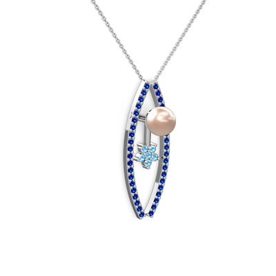 Pembe inci, lab safir ve akuamarin 14 ayar beyaz altın kolye (40 cm beyaz altın rolo zincir)