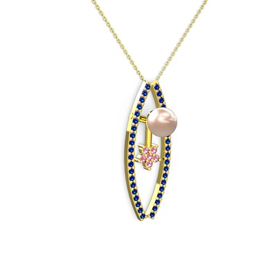 Pembe inci, lab safir ve pembe kuvars 18 ayar altın kolye (40 cm altın rolo zincir)