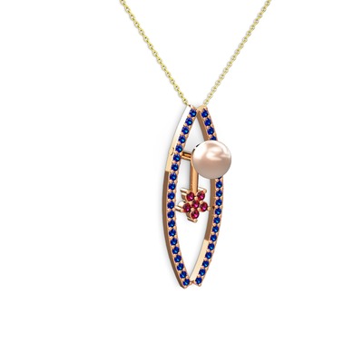 Pembe inci, lab safir ve rodolit garnet 14 ayar rose altın kolye (40 cm altın rolo zincir)