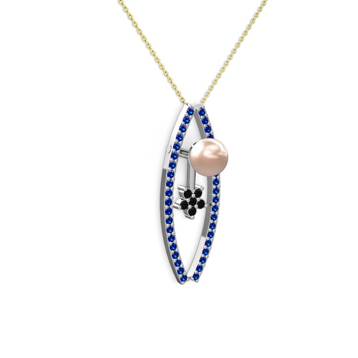 Pembe inci, lab safir ve siyah zirkon 18 ayar beyaz altın kolye (40 cm altın rolo zincir)