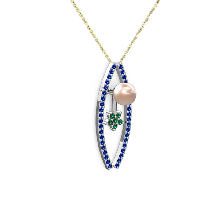 Pembe inci, lab safir ve yeşil kuvars 18 ayar beyaz altın kolye (40 cm altın rolo zincir)