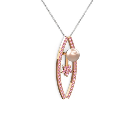 Pembe inci ve pembe kuvars 8 ayar rose altın kolye (40 cm beyaz altın rolo zincir)