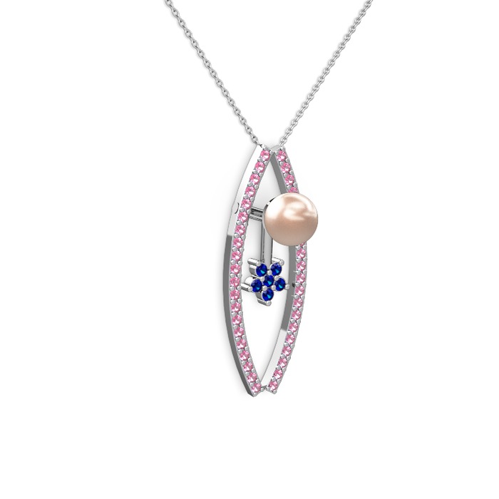 Pembe inci, pembe kuvars ve lab safir 18 ayar beyaz altın kolye (40 cm beyaz altın rolo zincir)