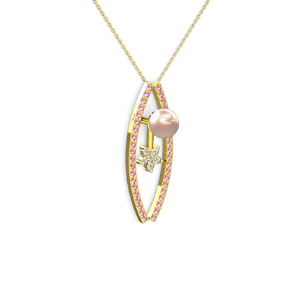 Pembe inci, pembe kuvars ve pırlanta 14 ayar altın kolye (0.066 karat, 40 cm altın rolo zincir)
