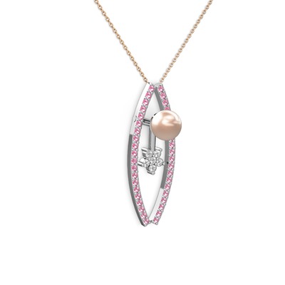 Pembe inci, pembe kuvars ve pırlanta 18 ayar beyaz altın kolye (0.066 karat, 40 cm gümüş rolo zincir)