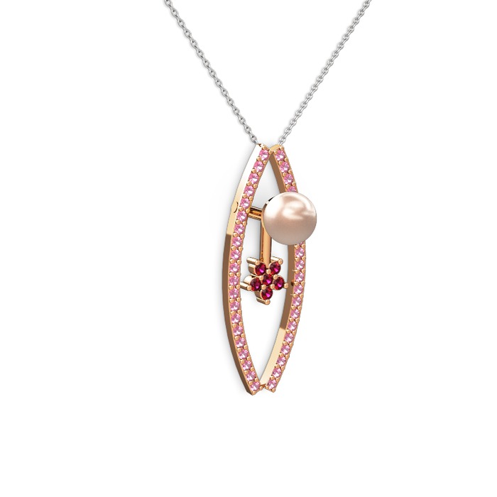 Pembe inci, pembe kuvars ve rodolit garnet 8 ayar rose altın kolye (40 cm beyaz altın rolo zincir)