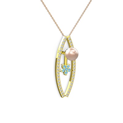 Pembe inci, pırlanta ve akuamarin 14 ayar altın kolye (0.3 karat, 40 cm rose altın rolo zincir)
