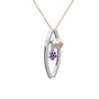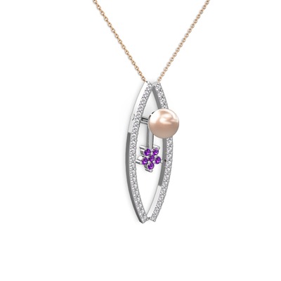 Pembe inci, pırlanta ve ametist 8 ayar beyaz altın kolye (0.3 karat, 40 cm rose altın rolo zincir)