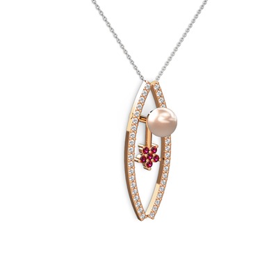 Pembe inci, pırlanta ve rodolit garnet 8 ayar rose altın kolye (0.3 karat, 40 cm beyaz altın rolo zincir)