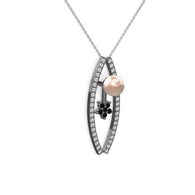 Pembe inci, pırlanta ve siyah zirkon 925 ayar siyah rodyum kaplama gümüş kolye (0.3 karat, 40 cm beyaz altın rolo zincir)