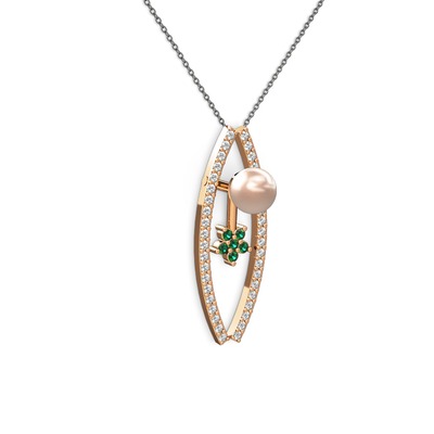 Pembe inci, pırlanta ve yeşil kuvars 925 ayar rose altın kaplama gümüş kolye (0.3 karat, 40 cm gümüş rolo zincir)
