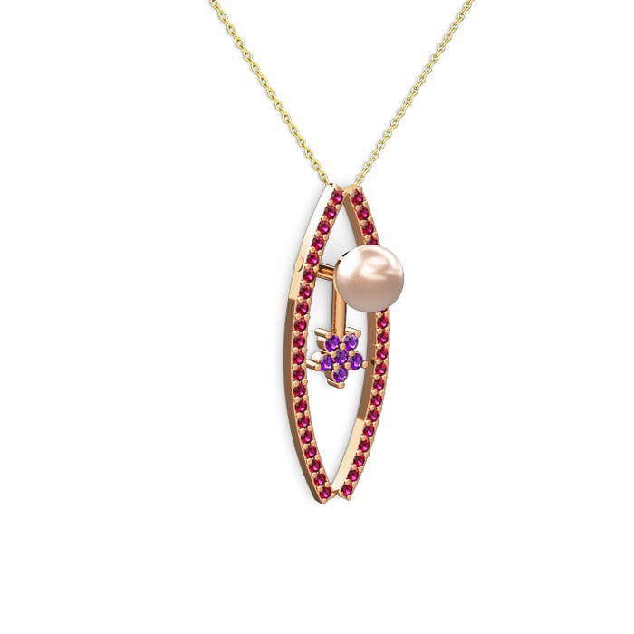 Pembe inci, rodolit garnet ve ametist 14 ayar rose altın kolye (40 cm altın rolo zincir)