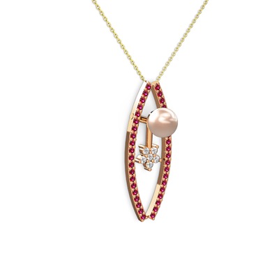 Pembe inci, rodolit garnet ve pırlanta 14 ayar rose altın kolye (0.066 karat, 40 cm altın rolo zincir)