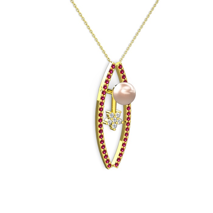 Pembe inci, rodolit garnet ve pırlanta 18 ayar altın kolye (0.066 karat, 40 cm altın rolo zincir)