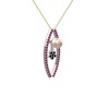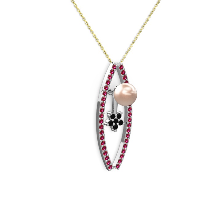 Pembe inci, rodolit garnet ve siyah zirkon 8 ayar beyaz altın kolye (40 cm gümüş rolo zincir)