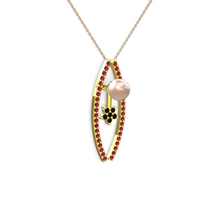 Pembe inci, rodolit garnet ve siyah zirkon 925 ayar altın kaplama gümüş kolye (40 cm rose altın rolo zincir)