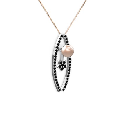 Pembe inci ve siyah zirkon 8 ayar beyaz altın kolye (40 cm rose altın rolo zincir)