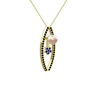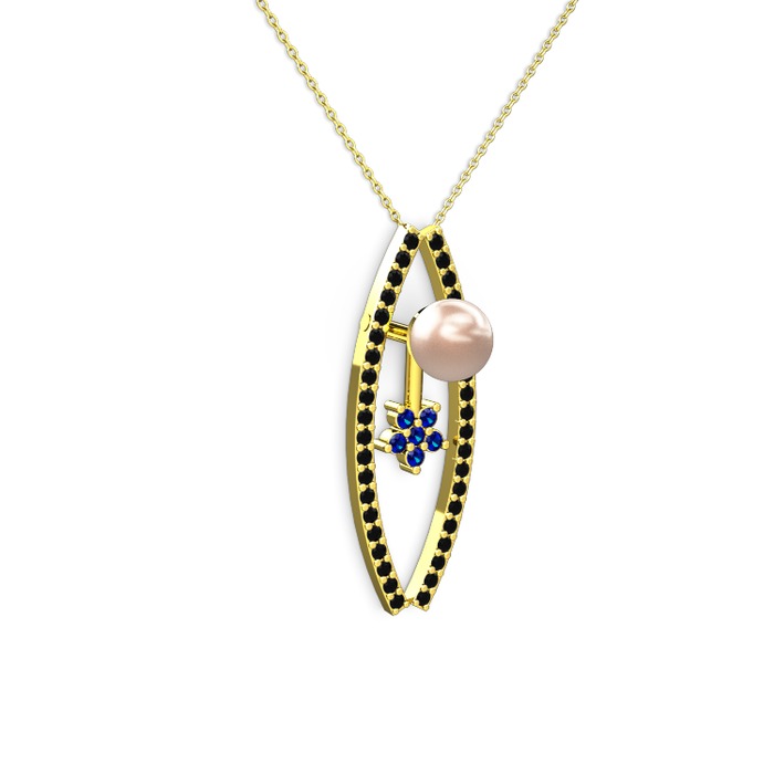 Pembe inci, siyah zirkon ve lab safir 18 ayar altın kolye (40 cm altın rolo zincir)