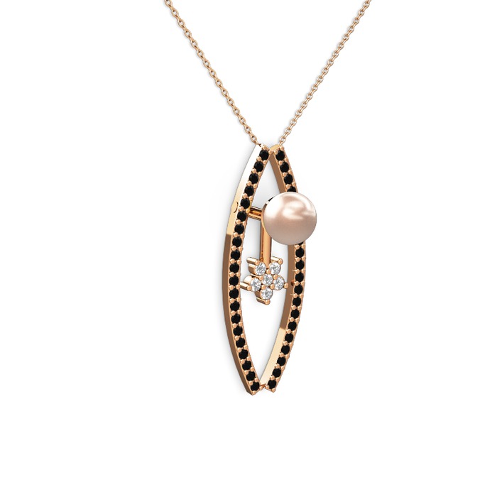 Pembe inci, siyah zirkon ve pırlanta 14 ayar rose altın kolye (0.066 karat, 40 cm rose altın rolo zincir)