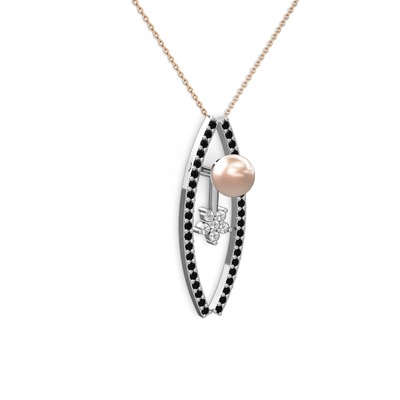 Pembe inci, siyah zirkon ve pırlanta 925 ayar gümüş kolye (0.066 karat, 40 cm rose altın rolo zincir)