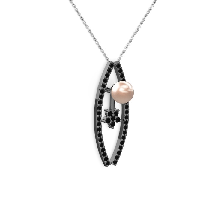Pembe inci ve siyah zirkon 925 ayar siyah rodyum kaplama gümüş kolye (40 cm beyaz altın rolo zincir)