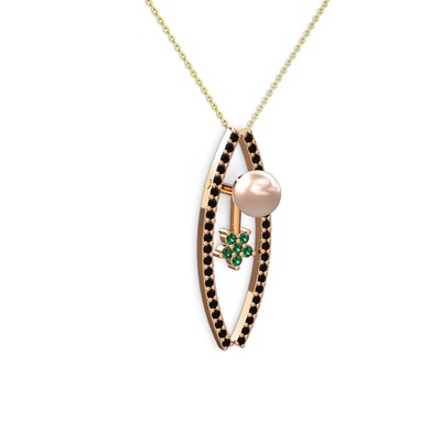Pembe inci, siyah zirkon ve yeşil kuvars 8 ayar rose altın kolye (40 cm gümüş rolo zincir)