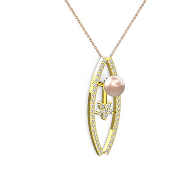 Pembe inci ve swarovski 8 ayar altın kolye (40 cm rose altın rolo zincir)