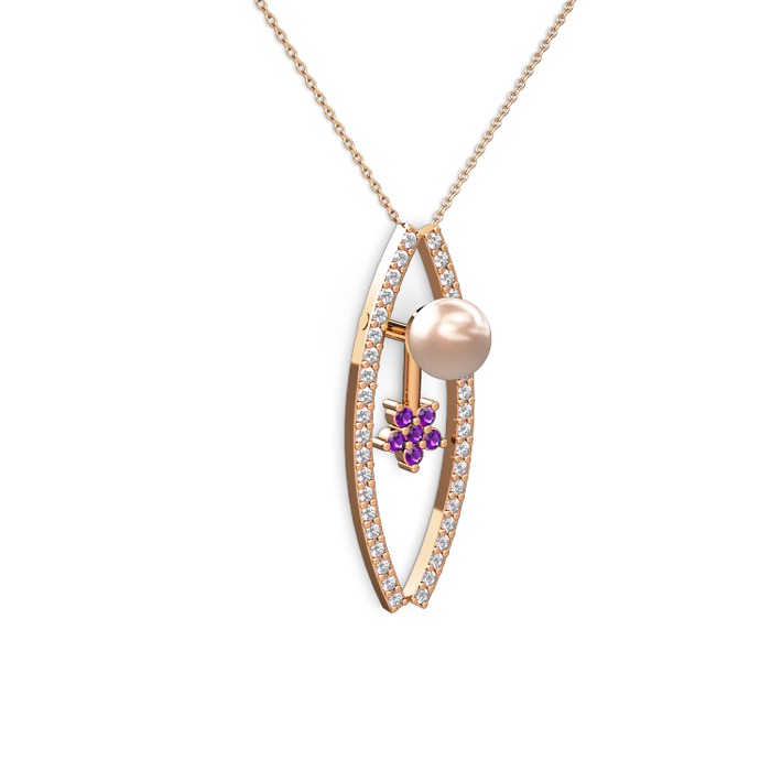 Pembe inci, swarovski ve ametist 18 ayar rose altın kolye (40 cm rose altın rolo zincir)