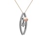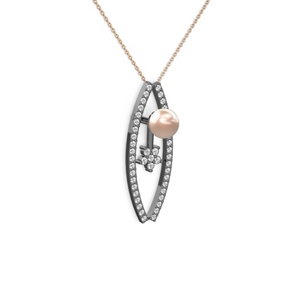 Pembe inci, swarovski ve pırlanta 925 ayar siyah rodyum kaplama gümüş kolye (0.066 karat, 40 cm rose altın rolo zincir)