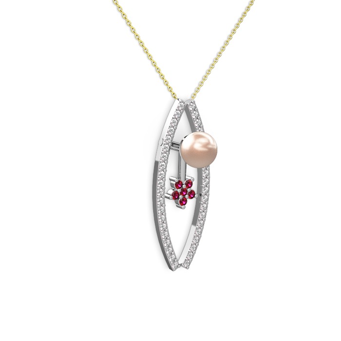 Pembe inci, swarovski ve rodolit garnet 925 ayar gümüş kolye (40 cm altın rolo zincir)