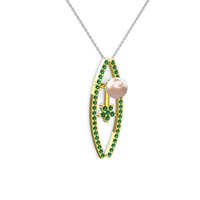 Pembe inci ve yeşil kuvars 8 ayar altın kolye (40 cm beyaz altın rolo zincir)