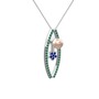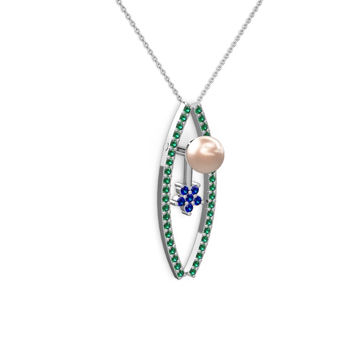 Pembe inci, yeşil kuvars ve lab safir 18 ayar beyaz altın kolye (40 cm beyaz altın rolo zincir)