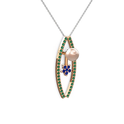 Pembe inci, yeşil kuvars ve lab safir 925 ayar rose altın kaplama gümüş kolye (40 cm beyaz altın rolo zincir)