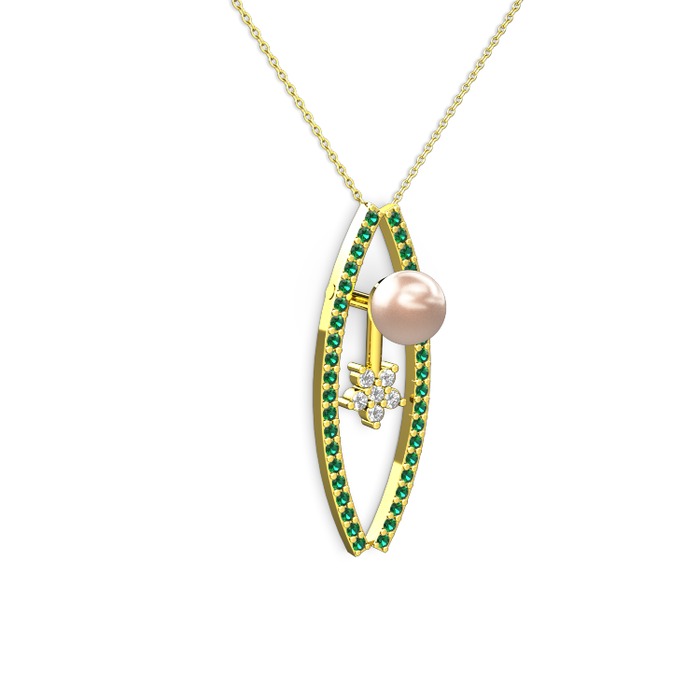 Pembe inci, yeşil kuvars ve pırlanta 8 ayar altın kolye (0.066 karat, 40 cm altın rolo zincir)