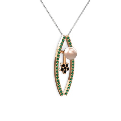 Pembe inci, yeşil kuvars ve siyah zirkon 8 ayar rose altın kolye (40 cm beyaz altın rolo zincir)