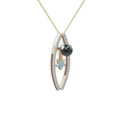 Siyah inci ve akuamarin 18 ayar rose altın kolye (40 cm altın rolo zincir)