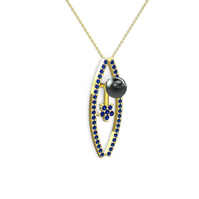 Siyah inci ve lab safir 925 ayar altın kaplama gümüş kolye (40 cm altın rolo zincir)