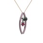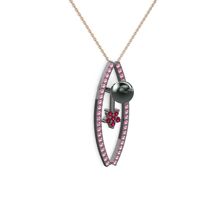 Siyah inci, pembe kuvars ve rodolit garnet 925 ayar siyah rodyum kaplama gümüş kolye (40 cm gümüş rolo zincir)