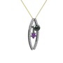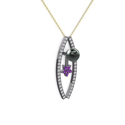 Siyah inci, pırlanta ve ametist 925 ayar siyah rodyum kaplama gümüş kolye (0.3 karat, 40 cm altın rolo zincir)
