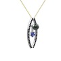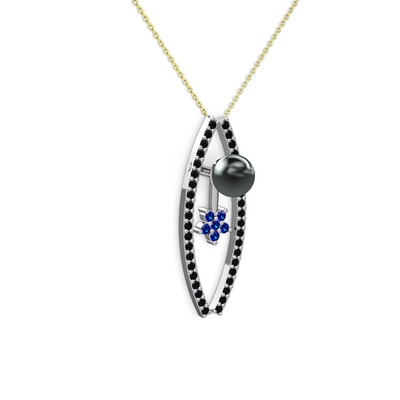 Siyah inci, siyah zirkon ve lab safir 8 ayar beyaz altın kolye (40 cm gümüş rolo zincir)