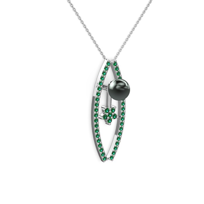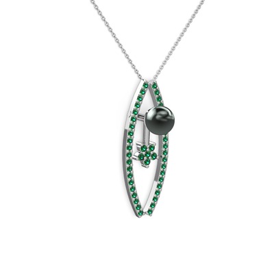 Siyah inci ve yeşil kuvars 18 ayar beyaz altın kolye (40 cm beyaz altın rolo zincir)
