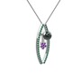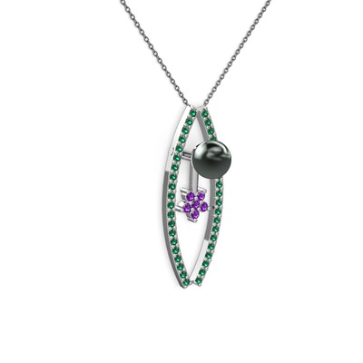 Siyah inci, yeşil kuvars ve ametist 8 ayar beyaz altın kolye (40 cm gümüş rolo zincir)