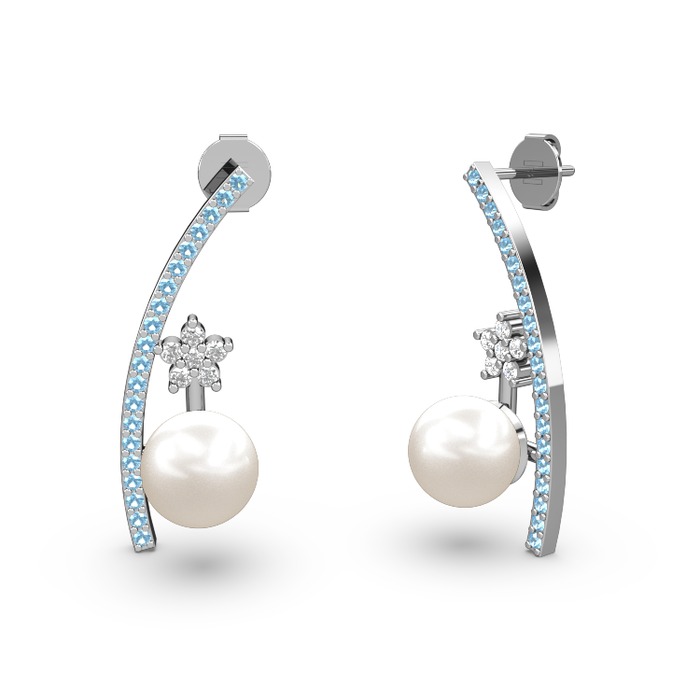 Inci, akuamarin ve pırlanta 8 ayar beyaz altın küpe (0.44 karat)