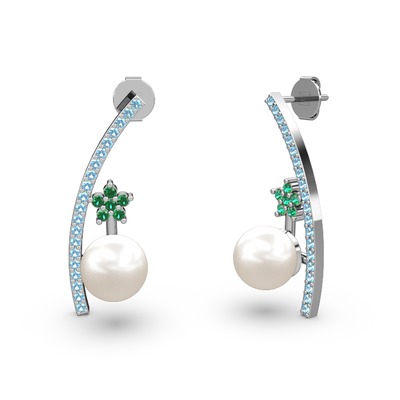 Inci, akuamarin ve yeşil kuvars 18 ayar beyaz altın küpe