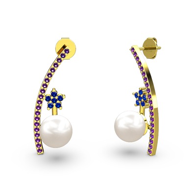 Inci, ametist ve lab safir 14 ayar altın küpe
