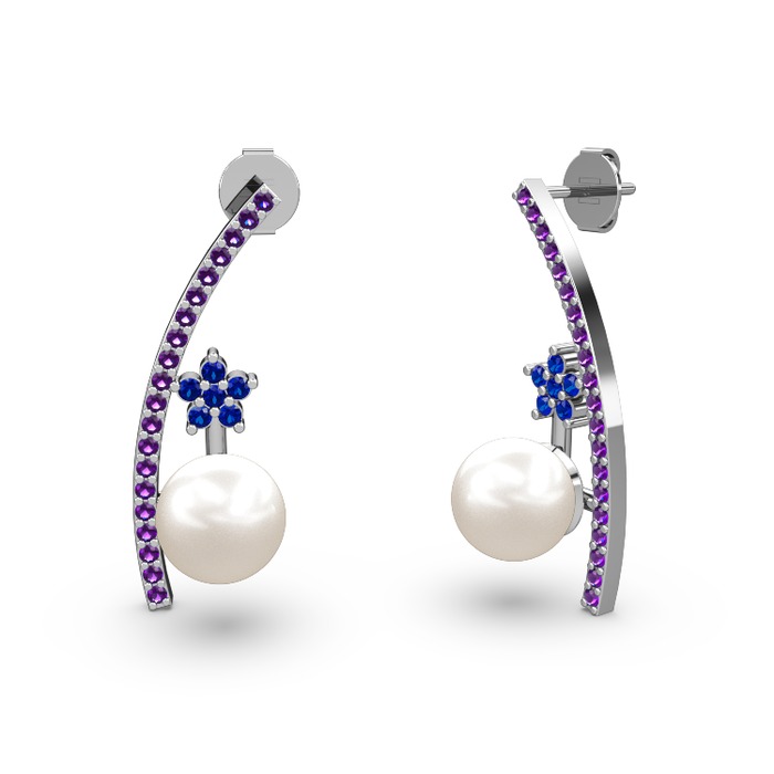 Inci, ametist ve lab safir 8 ayar beyaz altın küpe