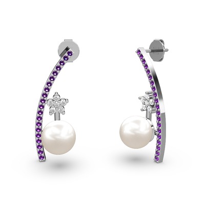 Inci, ametist ve swarovski 14 ayar beyaz altın küpe