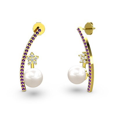 Inci, ametist ve swarovski 18 ayar altın küpe